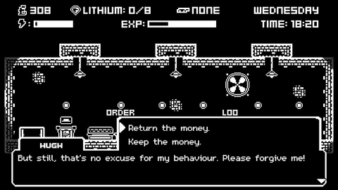 Чтобы сбежать, вам нужно заработать 3000 фунтов, добывая драгоценный литий. Чтобы выжить, вам нужно управлять своим временем, энергией и деньгами в жестком цикле дня и ночи.