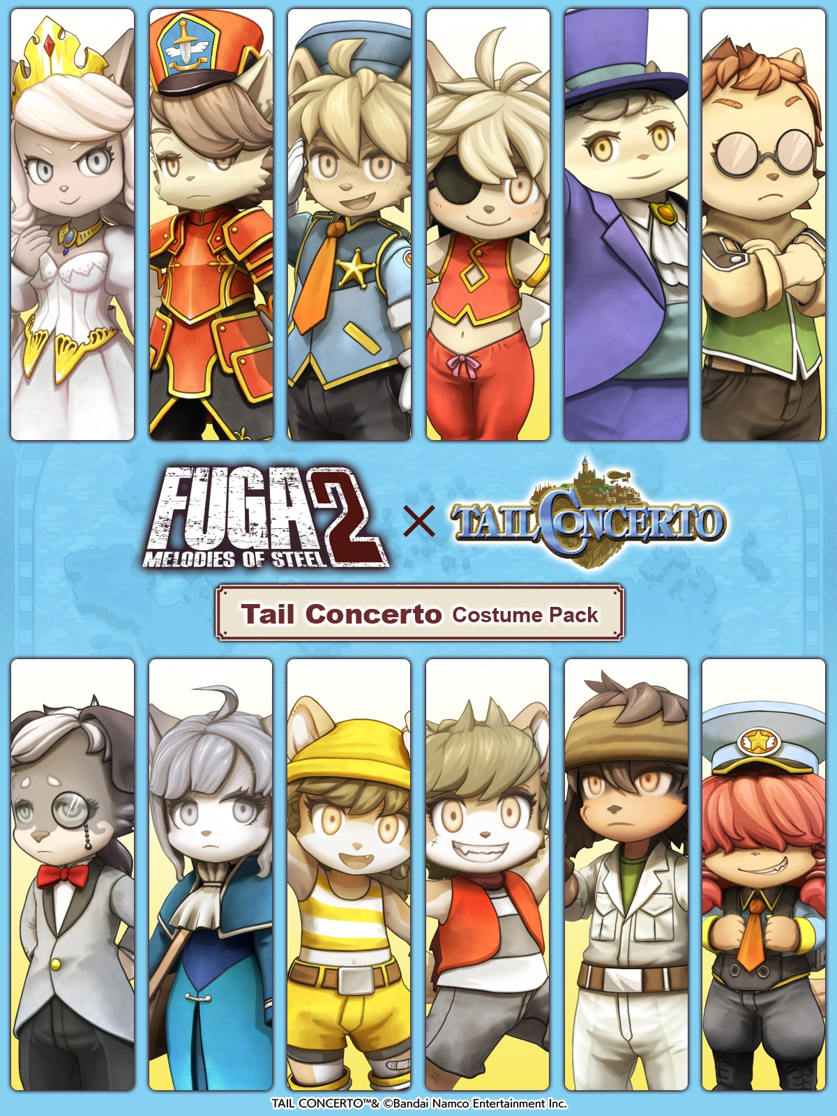 Костюмы «Tail Concerto» для Молта, Мэй, Кайла, Борона, Сокса, Чики, Гека, Сины, Джина, Ваппы, Бритца и Ваниллы (можно носить во время перерывов и в экспедиции).