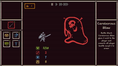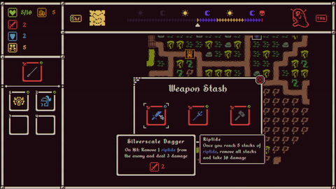 Каждый босс – это неповторимое испытание, и в вашем распоряжении более 350 предметов, открывающих доступ ко множеству различных стратегий и комбинаций. Когда на вас начнет охоту медведь по прозвищу Острый Коготь, чьи атаки пробивают любую защиту, каким количеством доспехов вы согласитесь пожертвовать в обмен на снаряжение, увеличивающее запас здоровья, скорость или урон? Обычные монстры, подстерегающие путников на дороге, будут постепенно истощать силы вашего героя, и даже если вы одолеете Острого Когтя, следующих трех дней может не хватить на то, чтобы снова раздобыть комплект брони в преддверии очередной страшной битвы. Возможно, взамен доспехов вы отыщете несколько предметов, обеспечивающих прибавку к показателям скорости и атаки, и это позволит очень быстро расправляться с противниками – порой еще до того, как те нанесут первый удар. А затем, если вам повезет набрести на Шафрановое перо, можно будет за счет своей повышенной скорости залечивать раны прямо по ходу боя. Но случись так, что на вас начнет охоту Черный Рыцарь, который скопирует себе вашу силу атаки, нужно будет сделать ставку на броню: если на вас Острая чешуя, отражающая удары, и Рубиновые серьги, каждый второй ход наносящие повреждения врагу, Черный Рыцарь будет получать постоянный урон, при этом не имея возможности усилиться за ваш счет. Однако если в ходе странствий вам попадется волшебное оружие, осмелитесь ли вы взять его с собой? Оно упрочит мощь Черного Рыцаря в грядущей схватке, но станет вам большим подспорьем, если вы ее переживете…