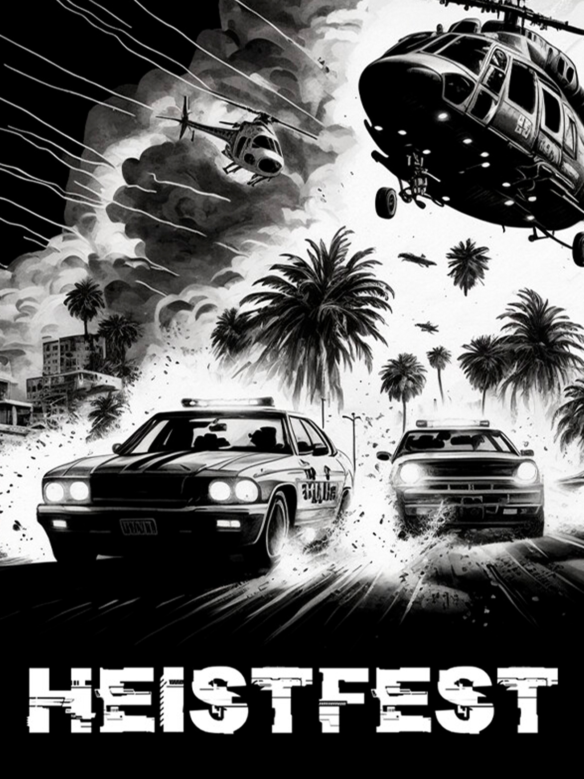 Heistfest сочетает в себе динамичное аркадное вождение с открытыми локациями и нарастающим давлением. Уникальный черно-белый визуальный стиль придает игре яркую индивидуальность, а карты с большим количеством разрушений поощряют высокоскоростные трюки и взрывные тактики.