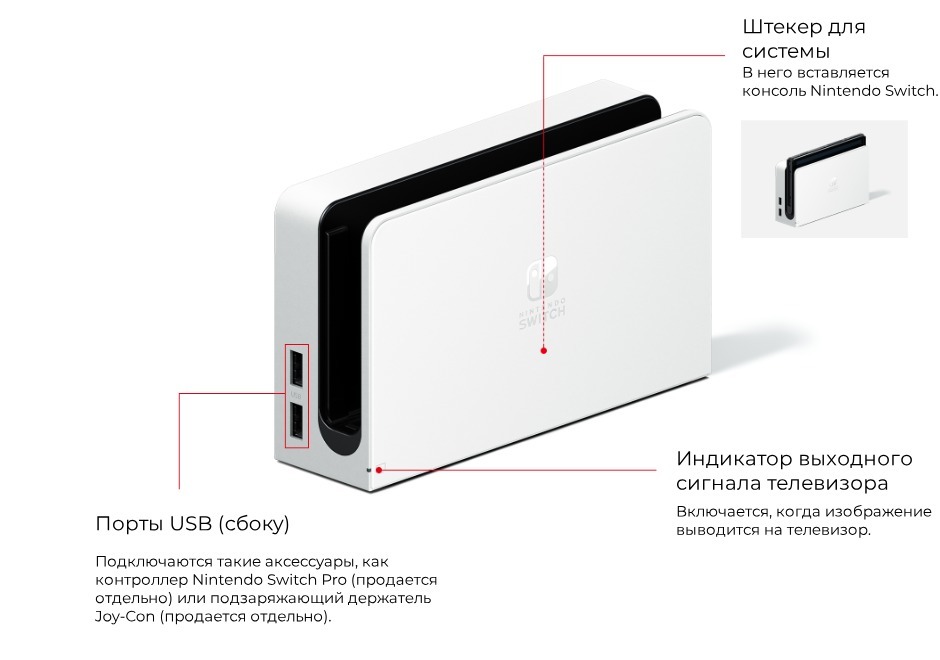 Как и в случае с Nintendo Switch, консоль Nintendo Switch (OLED-модель) позволяет играть на ТВ, а также делиться отделяемыми контроллерами Joy-Con для совместной игры