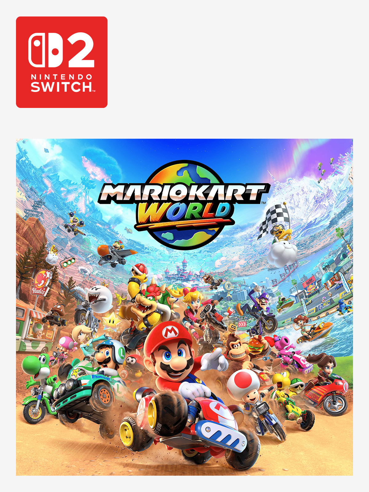 Приготовьте свои колеса для совершенно новой игры Mario Kart, созданной эксклюзивно для консоли Nintendo Switch™ 2, с целым миром взаимосвязанных трасс для гонок.