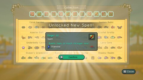 Каждому герою нужны оружие и броня. И хотя Бэйлин — обыкновенный рыбак, у которого вместо меча — удочка, вместо скакуна — лодка, а вместо шлема — шляпа, снаряжение должно быть подобрано идеально! С легкостью доставайте сокровища со дна магнитом или пробивайте стены пещер мощным сверлом, чтобы открыть новые пути. Улучшайте удочку и леску, чтобы достигать новых глубин и ловить самых опасных рыб, что скрываются в тени.